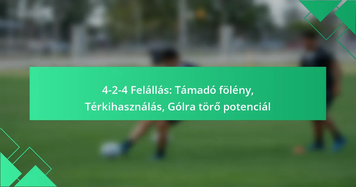 A 4-2-4-es felállás egy dinamikus taktikai megközelítés a labdarúgásban, amely az offenzív erősséget helyezi előtérbe négy védő, két középpályás és négy csatár elhelyezésével. Ez a felállás elősegíti a játékosok túlsúlyát és a numerikus előnyöket a támadó zónákban, lehetővé téve a csapatok számára, hogy hatékonyan nyomást gyakoroljanak az ellenfelekre, miközben kihasználják a taktikai eltéréseket a nagyobb gólhelyzetek érdekében.